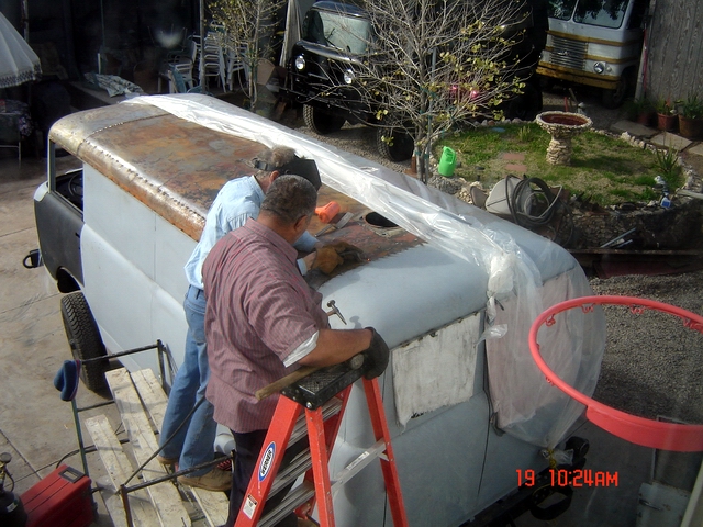 Here's Jesse and Ken tack welding the roof panels together. It will take some time to get it all welded up, but what an excellent job they are performing! I can't wait to see it in person.
