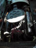 It might look like a tight fit, but there really was plenty of room to spare when it came to fitting this small block Chevy into the 677. Jesse relocated the engine back 18" to get a better weight distribution for rear axle traction. He also closed up the floor on the drivers side a bit to square up the opening and give a little more room to mount the drivers seat. He also fitted the radiator with a fan shroud and a guard to insulate and protect the upper radiator hose.