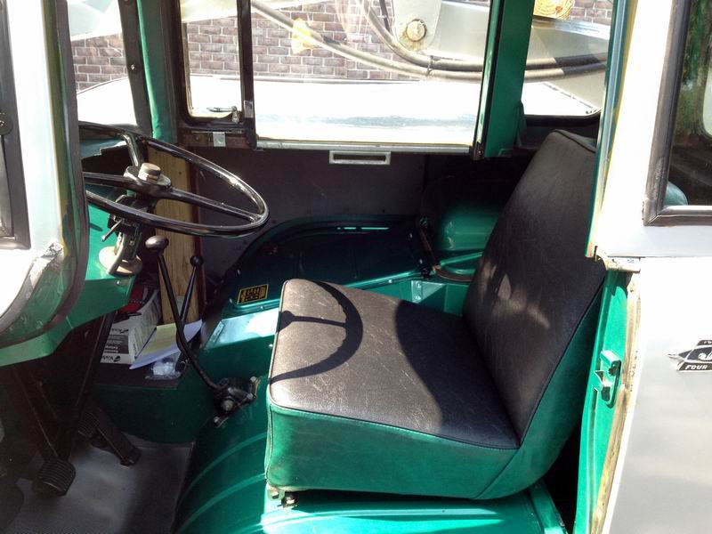 Although the Power Hoe originally came with Plasti-strand upholstery on the seating surfaces it was far too brittle and sources of the material are non-existent. So the decision was to save the original side vinyl pieces and use a black grained material that is the same type that was originally used on the Power Hoe operator’s seat. Also notice the passenger side window. It had to remain in the fixed position up because of no way to regulate its travel. This would soon change.