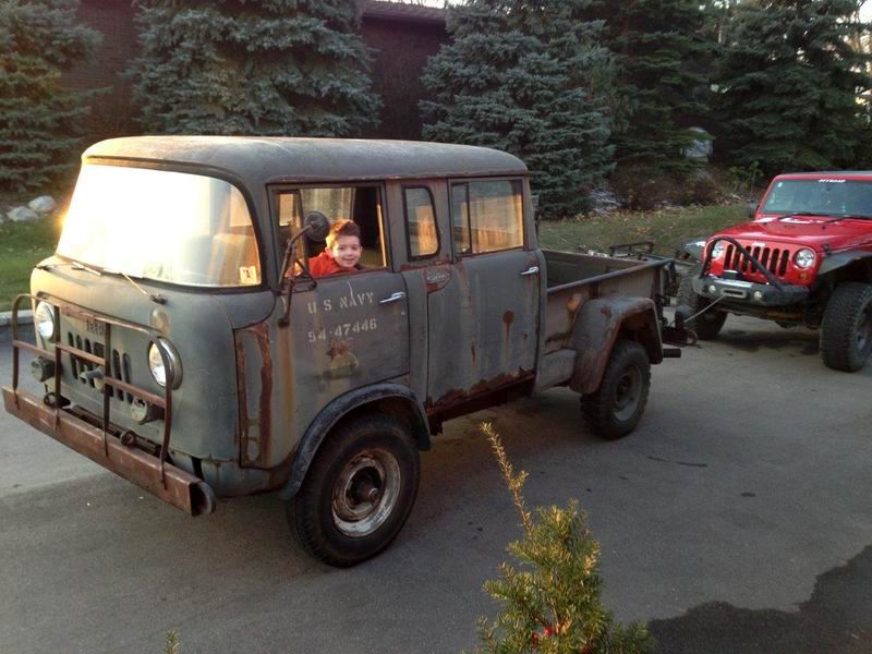 Looks like another M-677 has been brought back from the verge of oblivion. Matt scored this rare bird because of his attire! I could tell the tale but Matt put it together so well I just did a copy & paste so nothing would be lost in the translation. Great story Matt! Please keep us up to date as you progress on your restoration. "My name is Matt Sasina. I just bought my M-677 off a fellow Jeeper back in November 2013 (my first FC!). It was the craziest experience I have ever had. I was introduced to the former owner at a Jeep fund raising event because I was wearing a burnt orange FC-150 shirt, which I bought from thefcconnection.com! A guy saw my shirt and said he had a friend with an FC in his garage and wanted him to see my shirt. After a not so short discussion, I came to find out that the gentlemen owned a 4 door Military FC. I could not believe it, as I have only seen 1 other FC in my area, let alone a M-677. I gave him my contact information and asked him to let me know if he had any leads on FCs in the future. A few weeks later he called me up and asked if I would be interested in his 677! The rest is history. She barely fits in my garage, and did not want to get on, or get off the trailer, hence my Jeep being strapped to a tree to winch her off. But she is home now awaiting her loving return to glory. Anyway, she has 15,718 miles on her and still has her original Cerlist engine. Based on the engine still being there, I am hoping to restore her back to original condition. Please add me to the registry and feel free to use the pictures I included. The specs are below. Thanks for the amazingly informative website!" VIN #:9327-10264 Delivery date: June 1964 Engine: Cerlist Trans: T-90 Transfer Case: Spicer 18 Engine #: Not sure yet! I need to get under there and confirm, I will let you know when I do! Plan: Restore to her original glory!