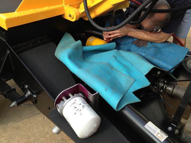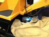 The old sock type oil bath for the hydraulic fluid (yellow) is being cut off. Laying in the foreground is a bracket designed for the new set up, its “low key “ and out of site, the white filter will be painted industrial dark grey and will have old period correct decals added to it.