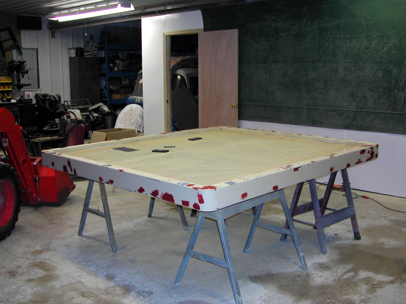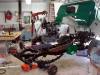 One problem with the truck was that even though both the cab & bed were painted green, they were different shades that didn’t complement each other. My plan was to keep the cab color and paint the bed, gas tank, and battery box black along with the vertical stakes on the bed. Here I am stripping down the bed.