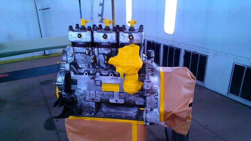 Now were really getting somewhere! This is one of the last pieces to be painted before the complete chassis is ready to accept the restored body. It’s all been masked off and rolled into the booth for a green makeover!
