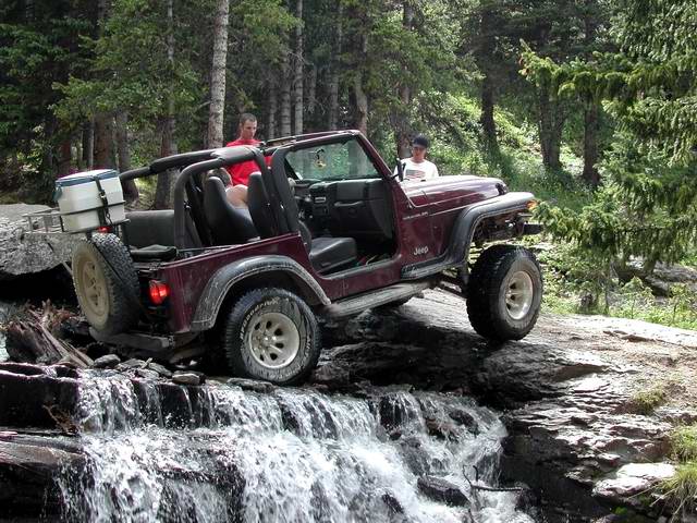 Momma's TJ got modified a bit in 2004. A Rubicon Express lift kit and some 33" BFG All-Terrain's helped it tackle some more rough stuff. This is at some water falls as your on your way to Telluride from Ouray headed toward Imogene Pass. |